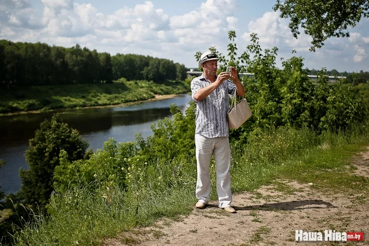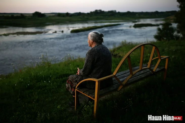 «Гляджу, як сонца заходзіць за Богаву гару. Гэта вось там, на паўночным беразе», — сядзіць жанчына на лаўцы над абрывам. Яна прыехала ў Дзісну ў 1950-х з Сібіры. І цяпер штовечар прыходзіць сюды, на гэтую лаву.