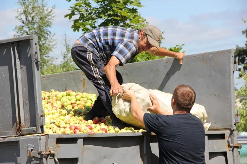 Фото газеты «Чачэрскі веснік»: начался сезон закупки яблок у крестьян.