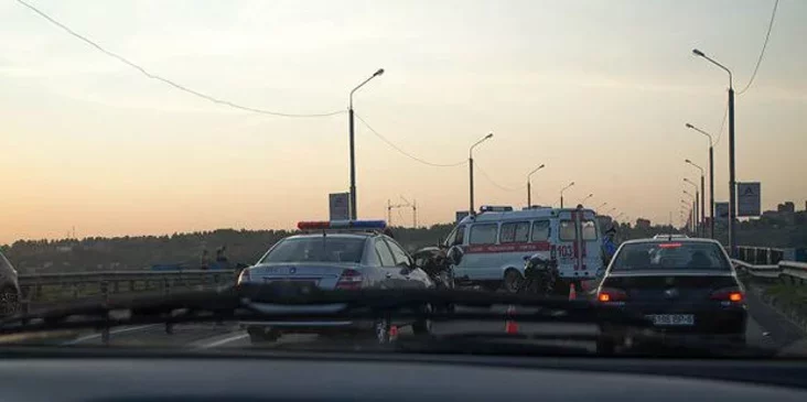 Это произошло 30 июля около 20.40. Мотоцикл Suzuki на скорости 85 км/ч врезался в BMW, а следом за ним в Citroen влетел Kawasaki. Первый мотоциклист чудом уцелел.