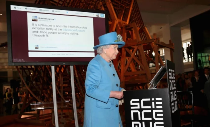 Британская королева Елизавета II во время церемонии открытия новой галереи в Музее науки в Лондоне отправила свое первое сообщение в «Твиттере» под собственным именем.