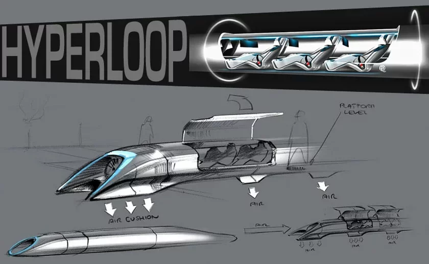 Проект Hyperloop был представлен в 2013 году. Он включает систему труб на эстакадах, по которым со скоростью до 965 км/ч перемещаются капсулы с 28 пассажирами. В трубах поддерживается низкое давление, капсулы движутся над днищем трубы, фактически летят, благодаря закачиваемому под них воздуху.