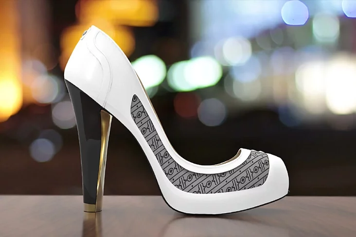 В туфли вставлены E-Ink-дисплеи (электронная бумага), которые могут не только менять цвет, но и приобретать узор.