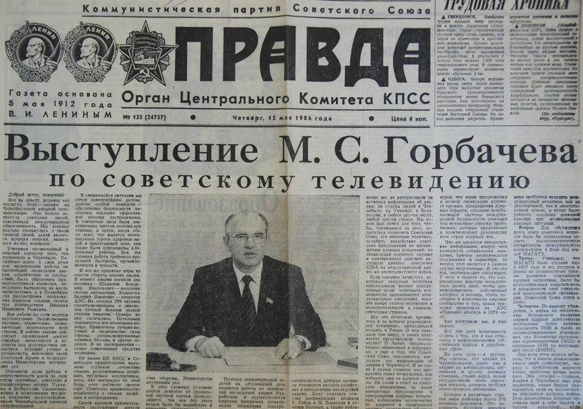 Советские СМИ не сразу сообщили об аварии. Эвакуация города Припять была проведена 27 апреля, а на следующий день информагентство ТАСС дало сообщение об аварии всего две строки.