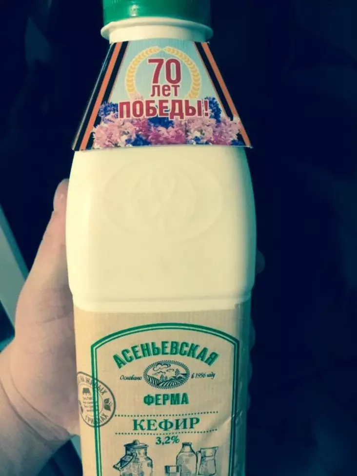 Как обычно накануне Дня Победы в российских, да и чего греха таить белорусских, магазинах появляются продукты, оформленные так называемой «георгиевской лентой».