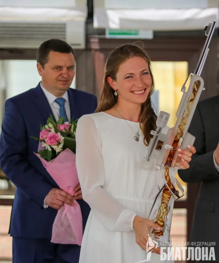 В минувшую субботу состоялось торжественное закрытие сезона, которое провела Белорусская федерация биатлона. Главная роль была отведена Домрачевой, завоевавшей Большой Хрустальный глобус Кубка мира. Подарок ей от федерации сделали соответствующий – хрустальную винтовку.