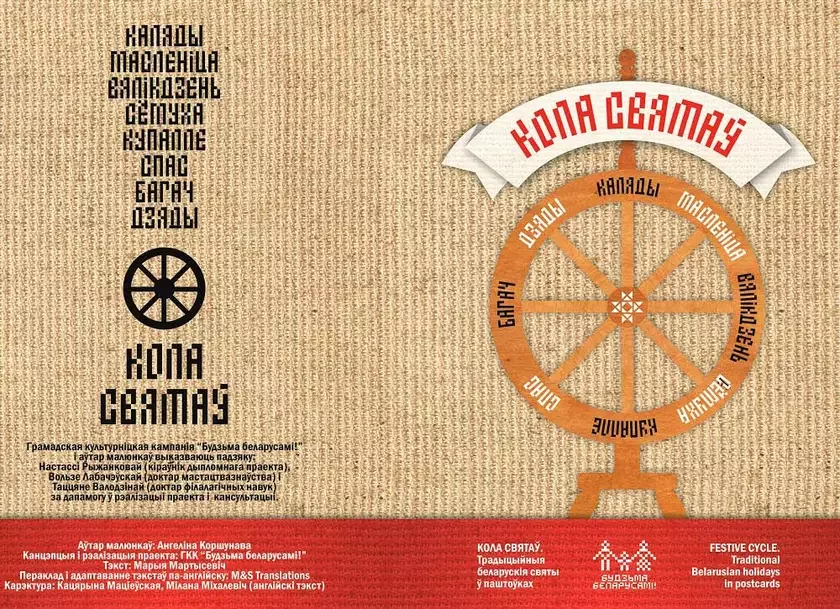 Кампанія «Будзьма беларусамі!» запусціла «Кола святаў» — новы пазітыўны набор паштовак пра беларускія традыцыйныя святы на англійскай і беларускай мовах.