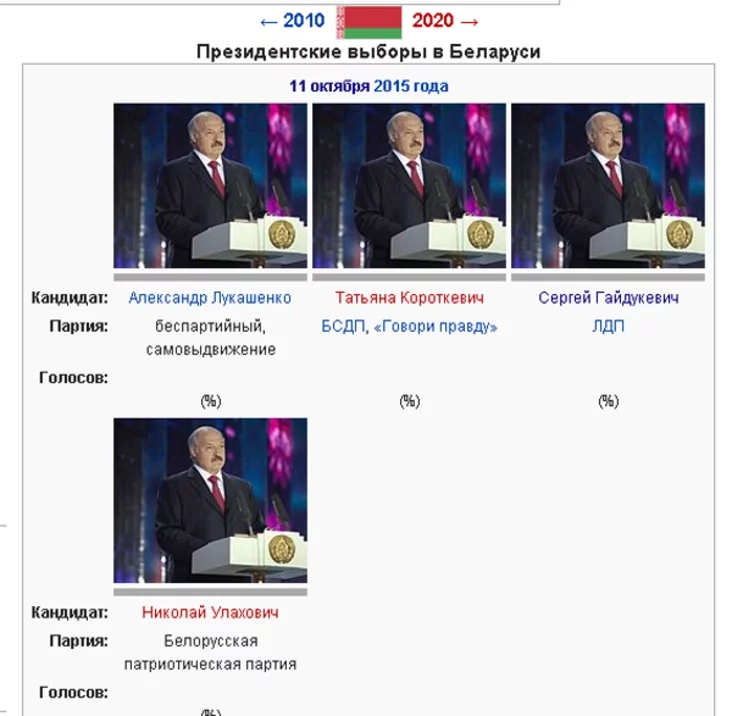 Вот так пишет о белорусских президенстких выборах — 2015 российская Википедия.