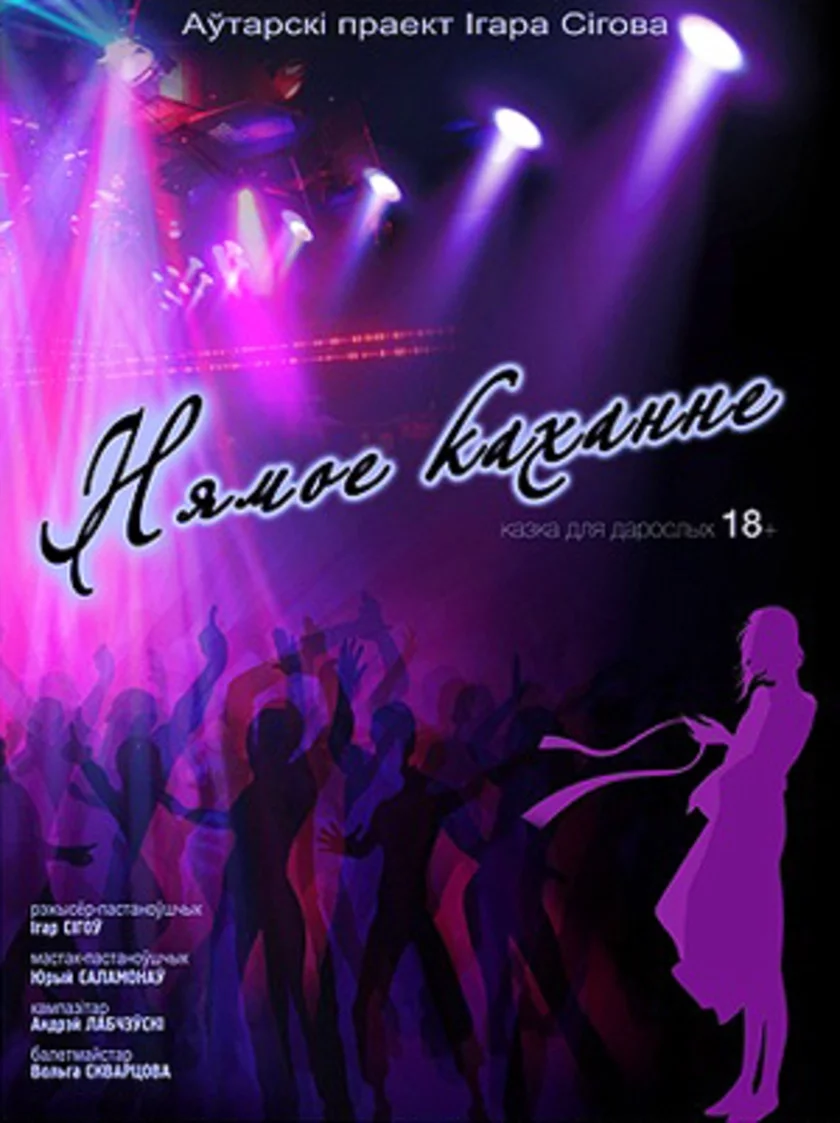 «Немая любовь» начинается с танца мужской стриптиз-группы Royal Diamonds. А кульминация постановки — женский танец на пилоне. Сюжет малозначимый. Зато на сцене камерного театра, который находится на минской Сторожовке, собраны «лучшие творческие силы» минских варьете и эротических шоу. Они раздвигают ноги (в трусах) прямо перед зрителями в первом ряду и браво срывают с себя брюки легким движением руки.