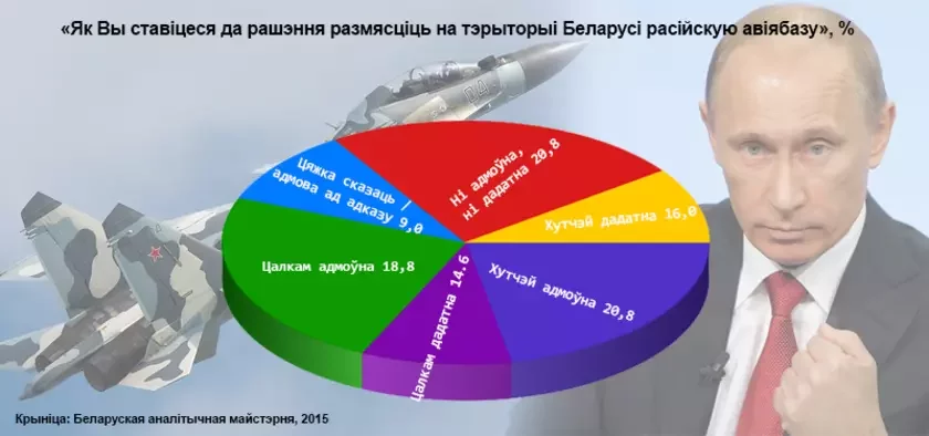 Как рассказал «Нашей Ниве» профессор Андрей Вардомацкий, на вопрос «Слышали ли Вы, что Россия собирается разместить на территории Беларуси военную авиабазу» «да» ответили 53.1% опрошенных, нет — 46,2%. Другие имели трудности с ответом.