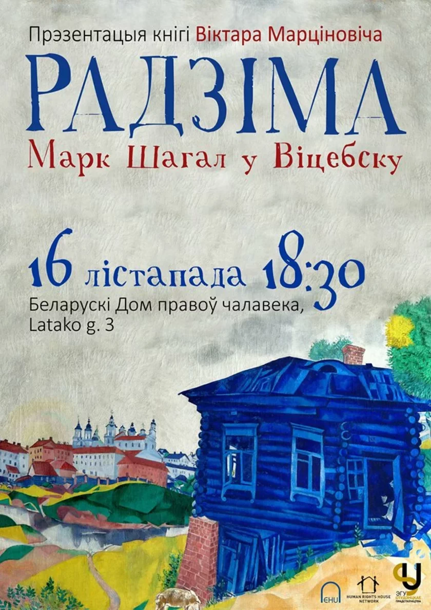 16 ноября в 18.30 в Доме прав человека в Вильнюсе пройдёт презентация книги Виктора Мартиновича «Родина. Марк Шагал в Витебске». Организатором мероприятия является Студенческое представительство Европейского гуманитарного университета при поддержке Белорусского Дома прав человека.