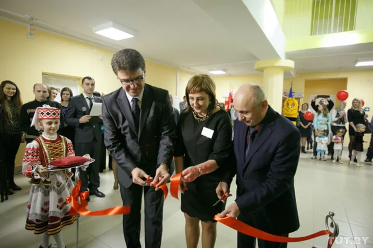 Трехэтажный сад № 28 начали строить в ноябре 2014-го и возвели буквально за год. Детское учреждение на 10 групп было разработано «Минскпроектом», а работы выполнялись столичным стройтрестом № 4, директор которого также присутствовал на торжественном открытии.