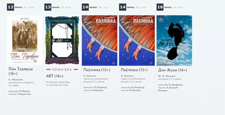 В афише сайта Белорусского Национального театра имени Янки Купалы стали указывать допустимый возраст для посетителей.