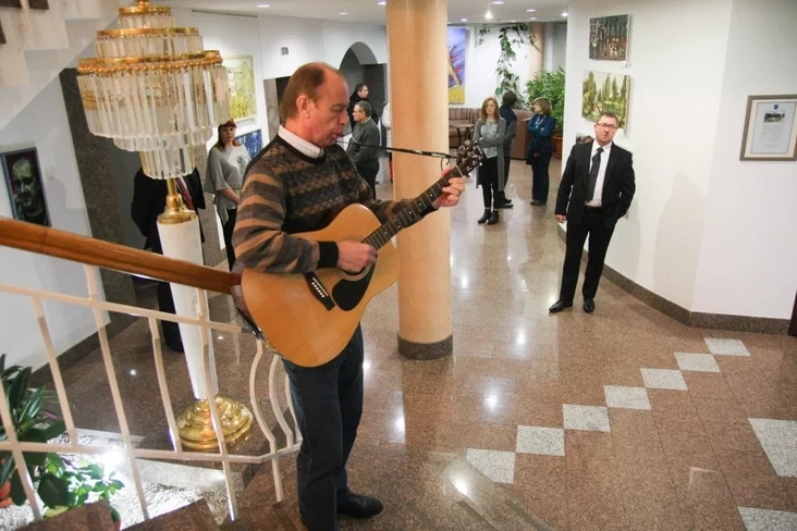 Посетители выставки могли не только увидеть работы художников обеих стран, но и услышать живую музыку в бардовском исполнении.
