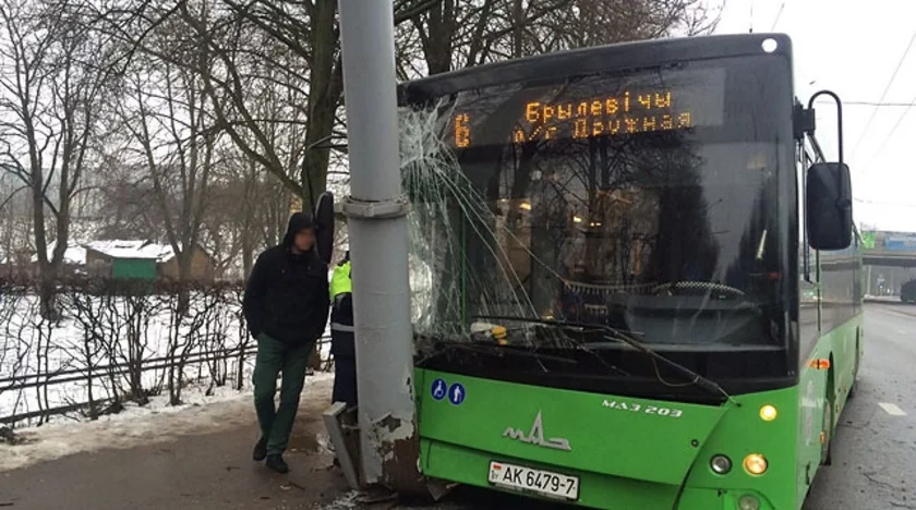 Авария произошла на улице Железнодорожной около 7.50. Автобус МАЗ, которым управлял водитель 1987 года рождения, врезался в столб. Повреждена передняя часть транспортного средства, а также выбиты стекла в салоне.