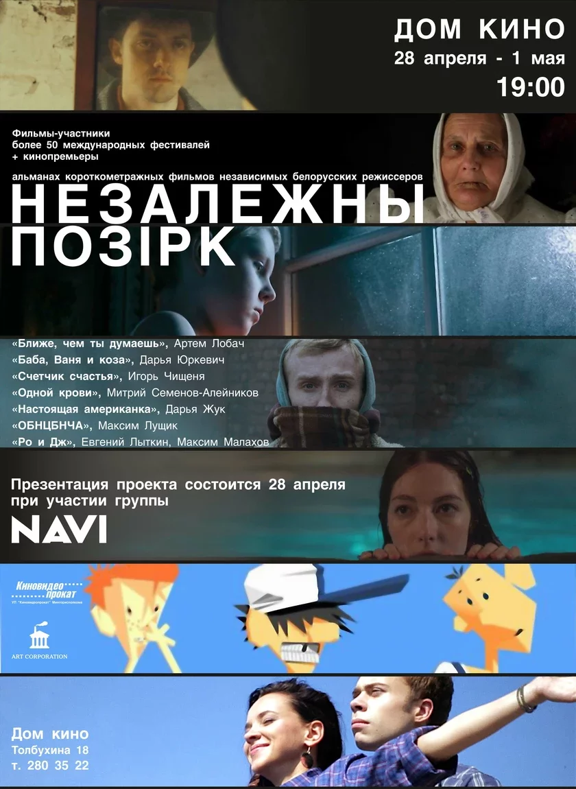 Впервые с 28 апреля по 1 мая в столичном кинотеатре «Дом кино» пройдут показы проекта «Незалежны позірк». Киноальманах включает лучшее из современного белорусского короткого метра и призван разрушить стереотипные представления белорусов о своем кинематографе.