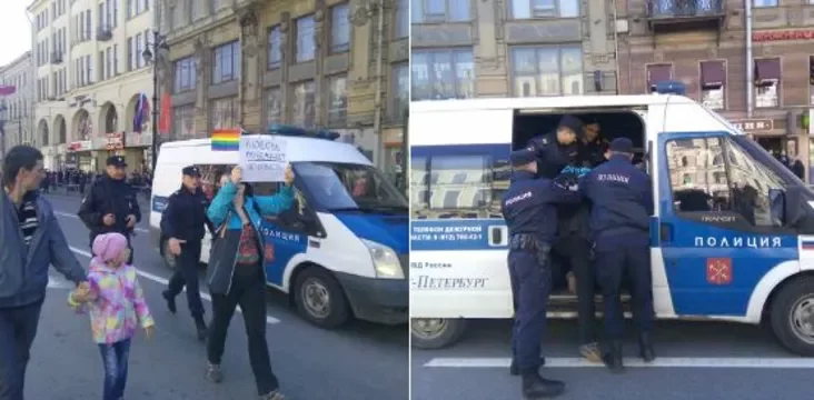 Перепалка завязалась во время первомайской демонстрации в российском Санкт-Петербурге в районе станции «Маяковская»: зоозащитники попросили убрать символику ЛГБТ из-за устного запрета полиции, но ЛГБТ-активисты опустить флаги отказались, сославшись на то, что радужный флаг в России не запрещён.