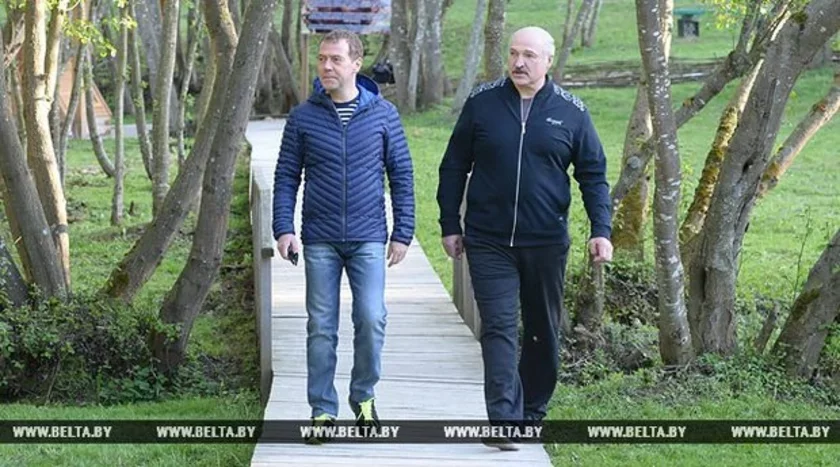 Александр Лукашенко и председатель российского правительства Дмитрий Медведев провели 12 мая неформальную встречу в агрогородке Александрия, сообщает пресс-служба президента.