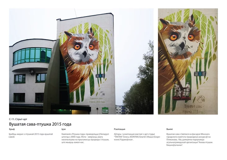 «Вушатая сава – птушка 2015 года». Аўтар: Маша GRAPEWAVE Рудакоўская і Алесь KONTRA Благій (арт-студыя TAKTAK)