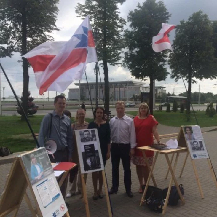 В пикете участвовали сопредседатель оргкомитета БХД Виталий Рымашевский, ответственный секретарь Денис Садовский, лидер Молодых христианских демократов Марина Хомич, руководитель Христианско-демократического движения Ольга Ковалькова и другие активисты, сообщает пресс-служба организации.