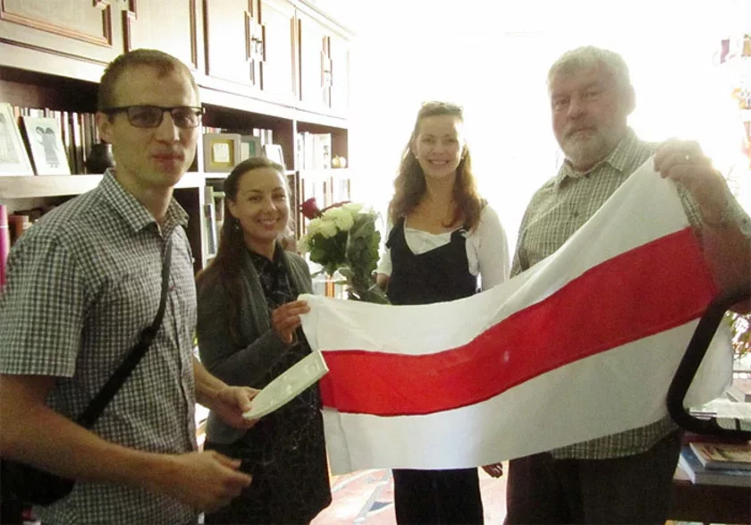 Утром 25 августа молодофронтовцы пришли к дому Владимира Орлова, чтобы поздравить классика беларуской литературы с днем рождения, который он празднует как раз в День Независимости Беларуси.