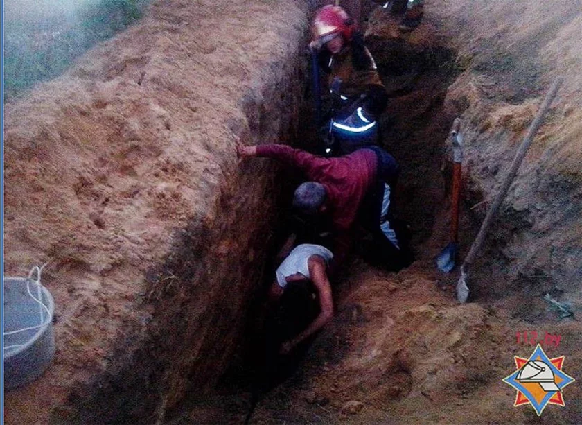 Сообщение о том, что человека засыпало в траншее, поступило барановичским спасателям в 19:34 15 сентября. Когда к месту вызова прибыли подразделения МЧС, на глубине около 3-х метров в траншее находился молодой человек, частично засыпанный землей. Студент проводил работы по обустройству канализации к частному жилому домовладению.