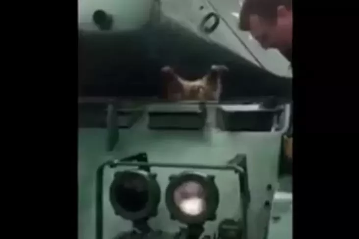 Довольно упитанный, но, видимо, очень любопытный енот решил посмотреть, что спрятано внутри американского легкого танка M41 Walker Bulldog — и «надежно» застрял.