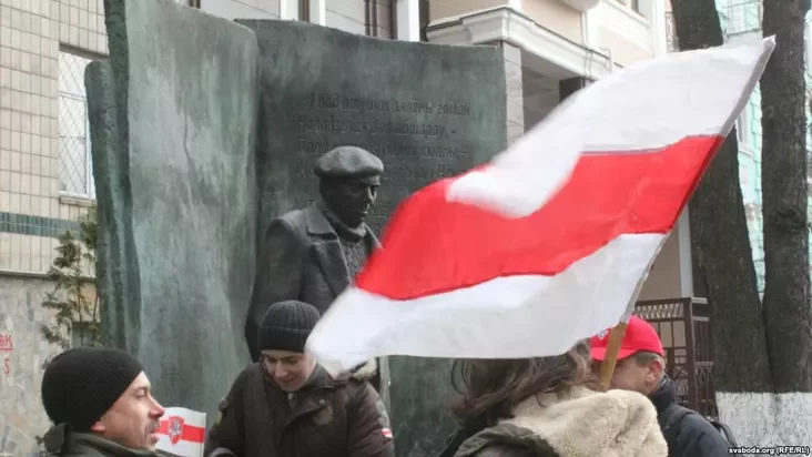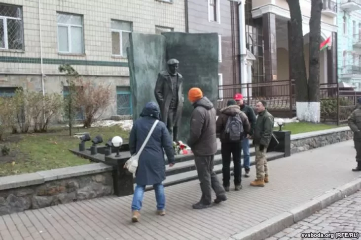 В Киеве к памятнику писателю цветы возложили представители киевского «БелРазмоўКлуба». Они читали его стихи.