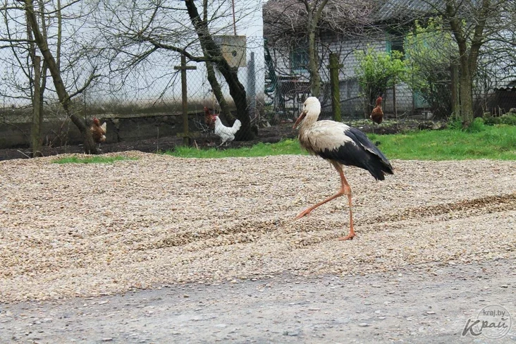 Три недели назад на подворьях жителей Молодечно по улице Новый Свет (микрорайон Лесные) появился аист. Птица не может летать, поэтому в поисках пищи ходит вблизи жилых домов и по огородам.