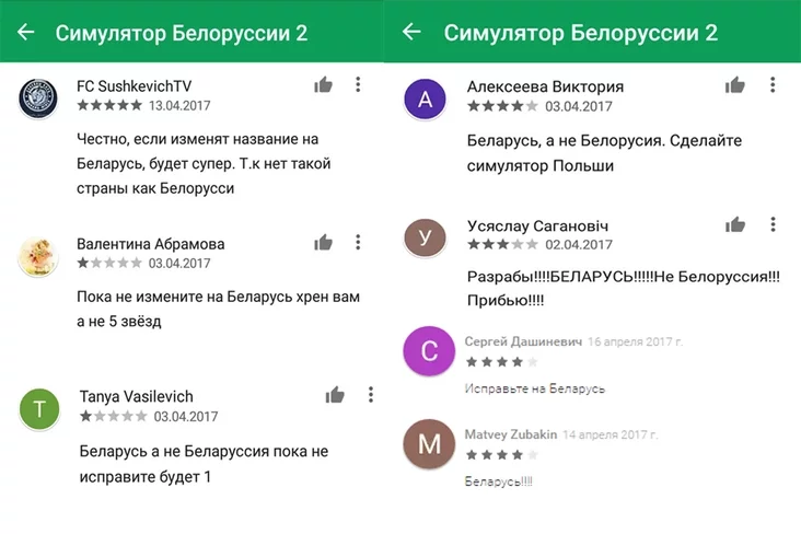 Первое, на что следует обратить внимание — это отзывы на игру. Белорусы не простили разработчикам «Белоруссии»: