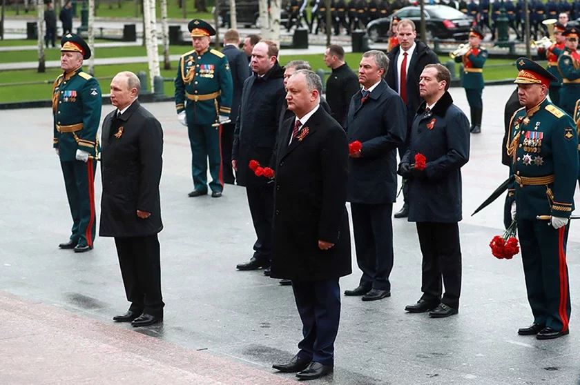 На параде Победы в Москве присутствовал президент Молдовы Игорь Додон, он сидел на мероприятии рядом с главой России Владимиром Путиным. Президент Молдовы посетил военный парад 9 мая впервые за 15 лет