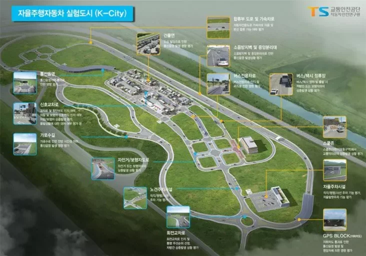 Согласно плану Министерства земли, инфраструктуры и транспорта Кореи, полигон площадью 360 тысяч квадратных метров будет иметь специальные зоны для общественного транспорта, скоростные зоны, зоны парковки и т.д., чтобы имитировать естественные условия. Обойдется такой городок с названием K-City в сумму около 10 млн долларов.