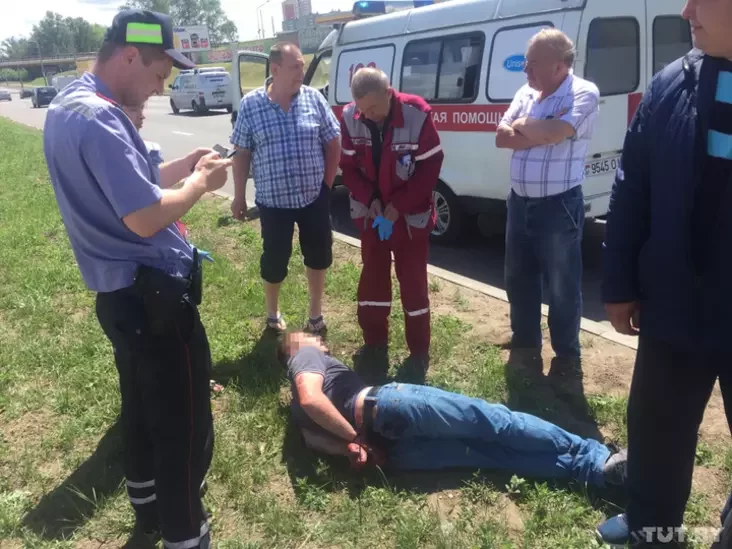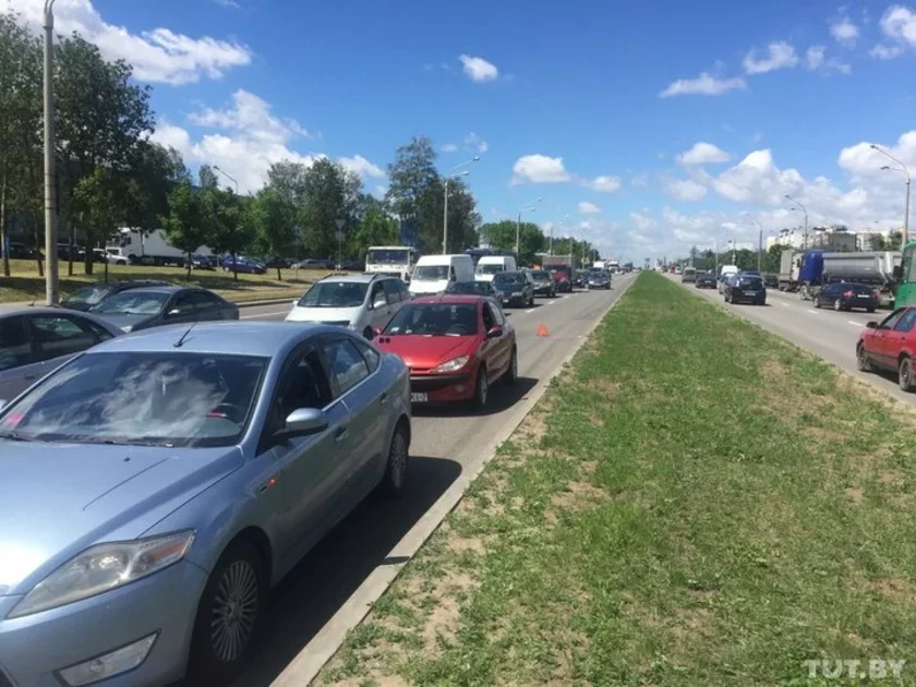 В Минске неадекватный мужчина выпрыгнул на ходу из машины и начал бить проезжающие автомобили. Об этом сообщил читатель Максим.