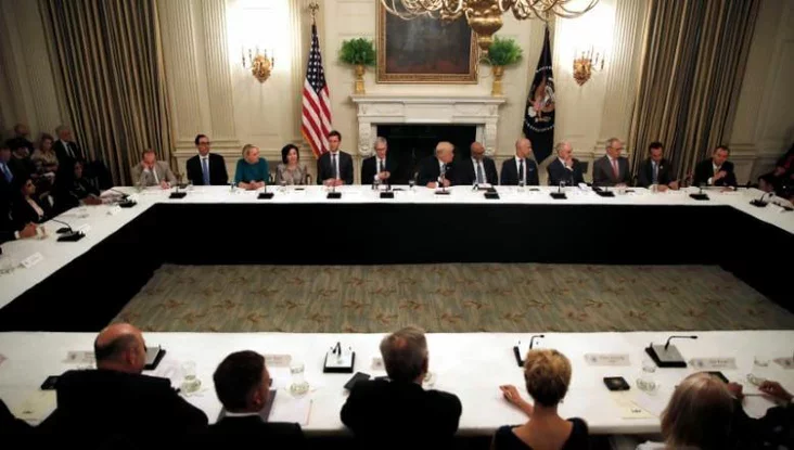 Президент США Дональд Трамп провел в Белом доме первое заседание технического совета, которое посетили руководители 18 крупнейших американских IT-компаний, включая главу Apple Тима Кука, главы Microsoft Сат'ю Наделу и гендиректора Amazon Джеффа Безоса.