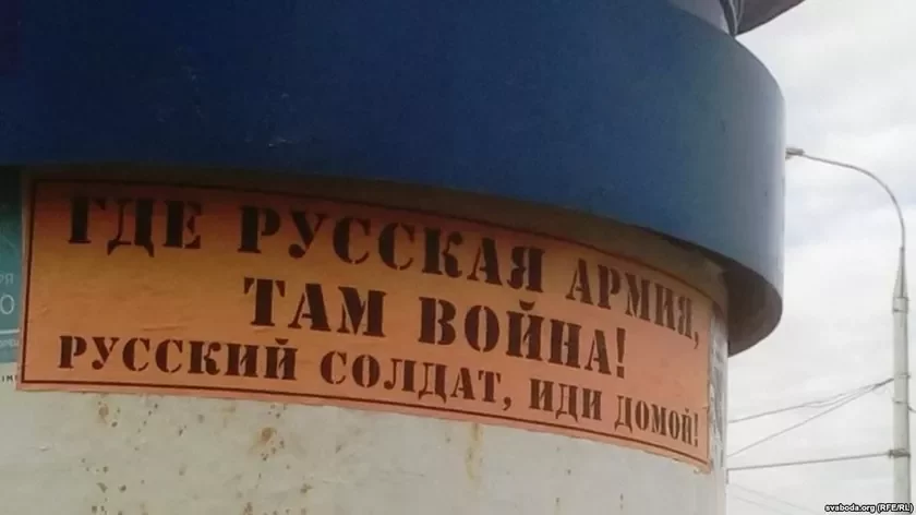На плакатах, которые появились в Бресте, написано «Где русская армия, там война», а также «Русский солдат, иди домой».