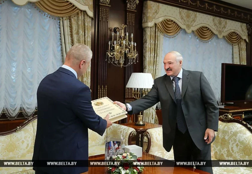Александр Лукашенко встретился с летчиком-космонавтом, уроженцем Беларуси Олегом Новицким. Лукашенко подарил Новицкому книгу о Дворце Независимости и поделился своими впечатлениями о космосе, пишет БелТА.