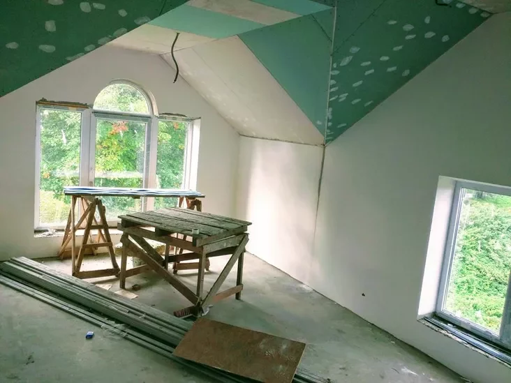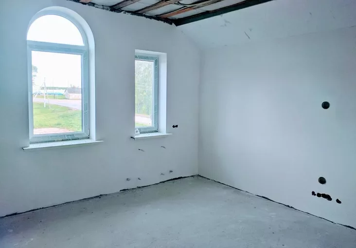 Дом еще недоделан, завершена только черновая отделка: еще нужно класть плитку, установить сантехнику, оклеить обои.