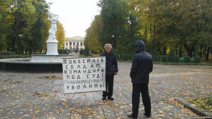 Барановичский активист Партии БНФ Николай Черноус вышел из плакатом с требованием отставки Александра Лукашенко в связи со случаем гибели солдата в Печах. Об этом сообщило радио «Свобода».