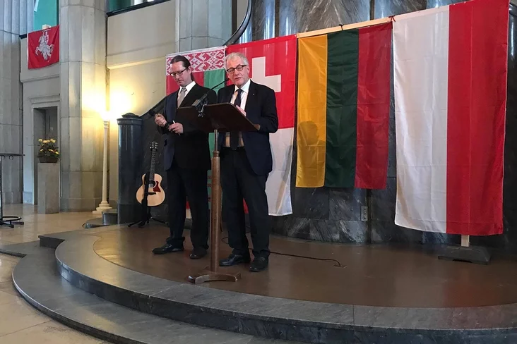 Напомним, с чего начался весь сыр-бор. 9 октября заместитель председателя Ассоциации белорусов в Швейцарии Алесь Сапега сообщил, что под влиянием польского посла в Берне Якуба Кумаха содержание таблички на памятнике Тадеушу Костюшко сильно сократили. Из него убрали белорусскоязычную версию и вычеркнули строку про «выдающегося сына Беларуси», оставив только имя, даты жизни и скромное «Поставлен Ассоциацией белорусов Швейцарии в 2017 году», написанное по-немецки. Причем белорусская ассоциация писалось как «Weissrussischen Vereinigung».