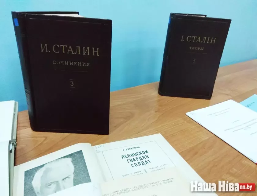 Сотрудница библиотеки пояснила «Нашей Ниве», что выставка посвящена столетию Октябрьской революции. Ранее экспонировалось гораздо больше книг на эту тему, однако их переместили в актовый зал факультета. Там проходит студенческий конкурс чтения стихов «Поэтический форум» в присутствии министра образования Игоря Карпенко.