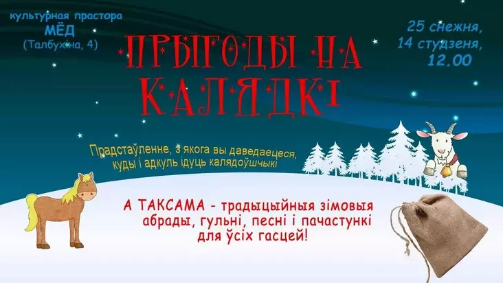 Перад Новым годам, вядома, нас чакаюць не менш разухабістыя Калядкі. Калі вашаму дзіцяці пакуль рана хадзіць па хатах у вобразах казы ці мядзведзя, можаце паглядзець, як гэта робяць іншыя. Студыя традыцыйных беларускіх святаў «Ланцужок» пакажа «Прыгоды на Калядкі». Абяцаюць не толькі расказаць, куды і адкуль ідуць калядоўшчыкі, але і пачаставаць смачнымі пернікамі і традыцыйнай куццёй.