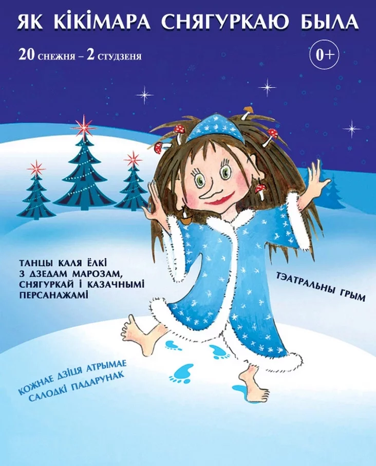 Ад 20 снежня па 2 студзеня ў Тэатры юнага гледача дзецям будзе дазволена тое, што звычайна не дазваляюць тут дарослым: танчыць, гучна крычаць і нават есці. Усё гэта ў межах навагодняй казкі «Як Кікімара Снягуркаю была». Акрамя агучанай Кікімары, забаўляць дзетак будуць лясун Лёха і Дзед Мароз.