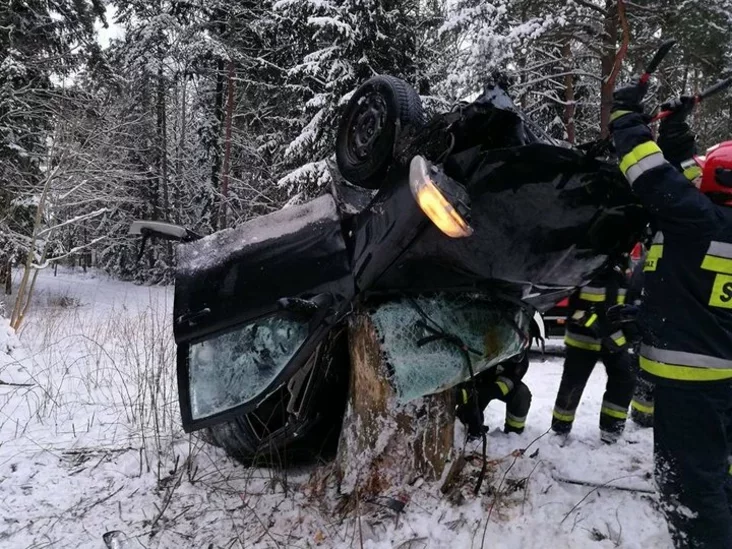 Под Белостоком автомобиль вылетел с дороги и врезался крышей в пень: погиб водитель из Беларуси