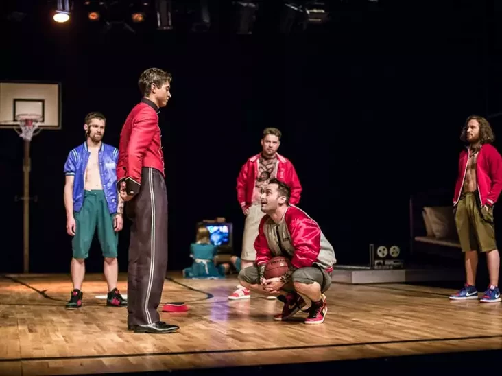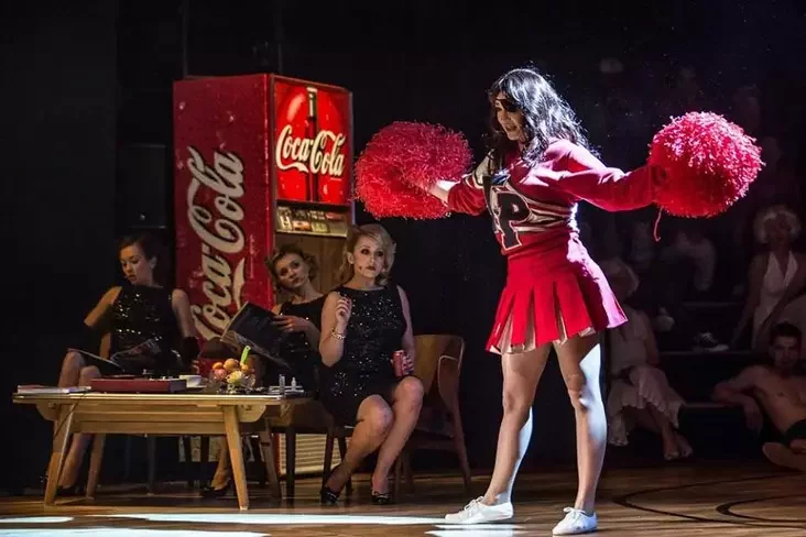 Тут тебе и певицы кабаре, и баскетбольная площадка с татуированными бандитами, и несчастный портье, которого вешают на баскетбольном щите, автомат с кока-колой, телевизор в углу, который смотрят сестрички из «Сияния». И все это происходит одновременно, сначала глаза отказываются верить происходящему на сцене поп-артовому китчу, но постепенно втягиваешься, ведь действие динамичное, нескучное. Зося в образе чирлидерши, прикольно же. Но на сцене появляется Густав, напоминающий скорее «Чувака» из «Большого Лебовского», и начинает свой монолог. Притом что идеи и тексты Мицкевича до сих пор режиссером резались нещадно, но монолог Густава звучит невыносимо долго (особенно с моим восприятием на слух старопольщизны), хотя с некоторыми элементами разнообразия: Густав останавливается, направляется к автомату с кока-колой, достает две бутылки, открывает их о край сцены и утоляет жажду.