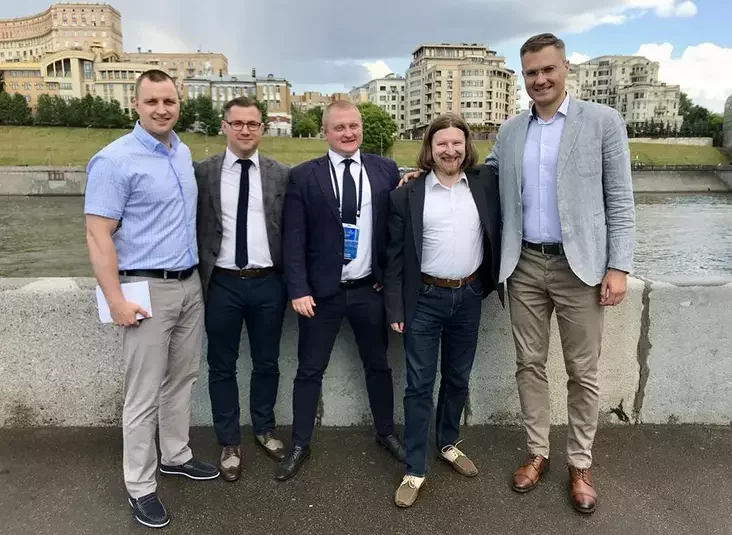 На нем можно увидеть декана факультета философии и социальных наук БГУ Вадима Гигина (справа), а также телеспикеров Александра Шпаковского (в центре), Алексея Дермана (второй справа) и бывшего неонациста Сергея Луща (второй слева).