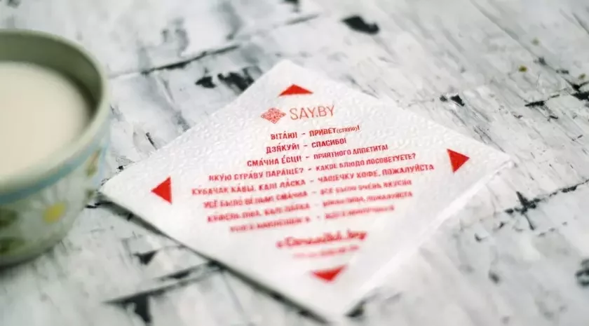 Популяризаторы бизнеса по-белорусски say.by выпустили салфетки с белорусскими словами, которые помогут посетителям кафе и ресторанов заказывать по-белорусски.