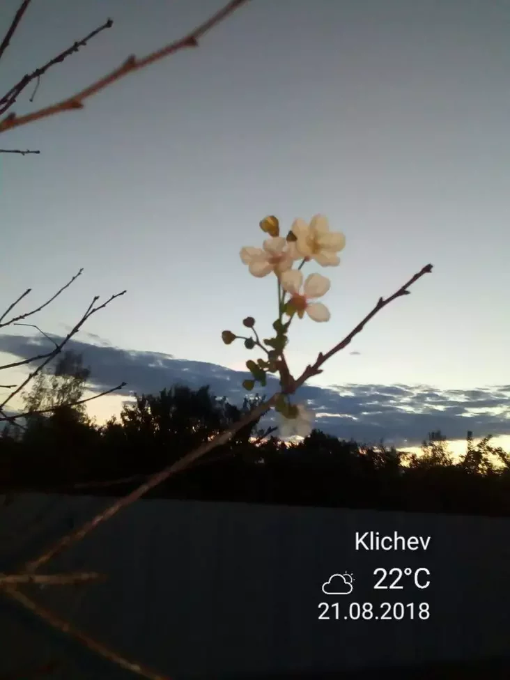 У жительницы деревни Константов Кличевского района Кристины в конце августа на даче зацвела вишня. Фотоснимками красоты женщина поделилась с «Радио Могилев».