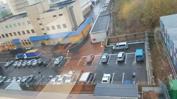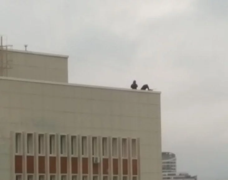 На крыше здания можно увидеть снайпера с винтовкой, по периметру территории стоят люди в амуниции и со щитами.