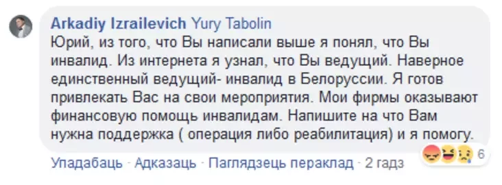 Также в комментариях он предложил «поддержку» Таболину: