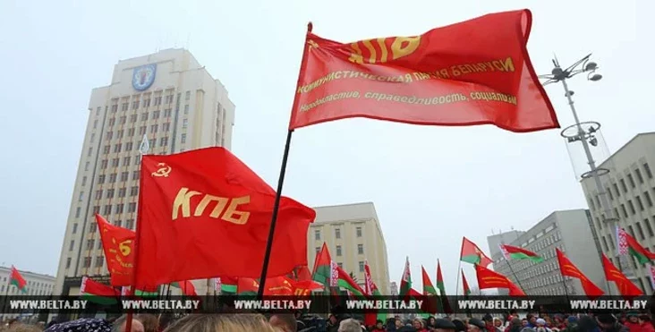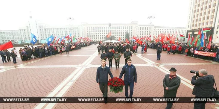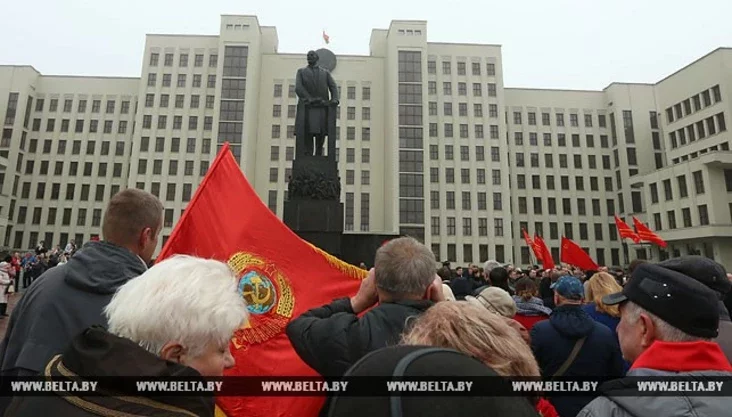 В Минске члены КПБ 7 ноября возложили цветы к памятнику Ленина и провели митинг на площади Независимости.