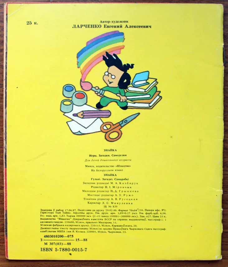 Дарэчы, праз нейкі час «Знайку» пачалі выдаваць таксама і па-руску. Але мне, хоць і ўзгадванаму ў рускамоўным асяроддзі, звыклая беларускамоўная версія падавалася нейкай цяплейшай, больш зразумелай.
